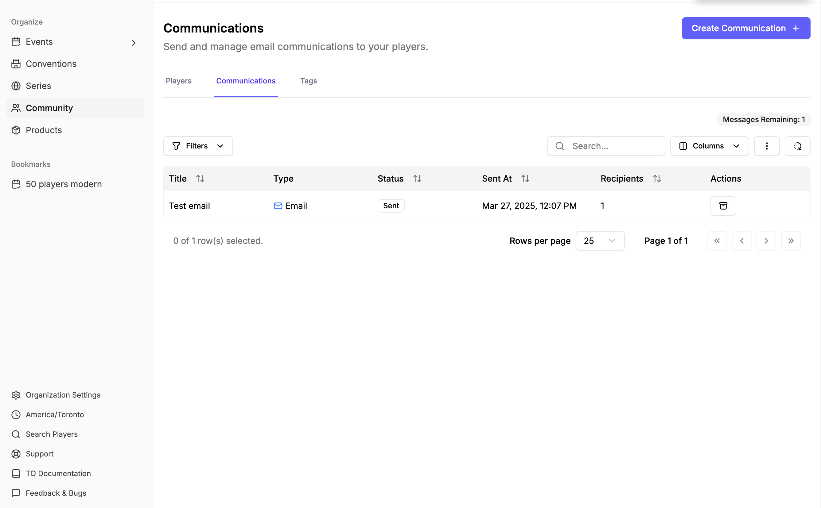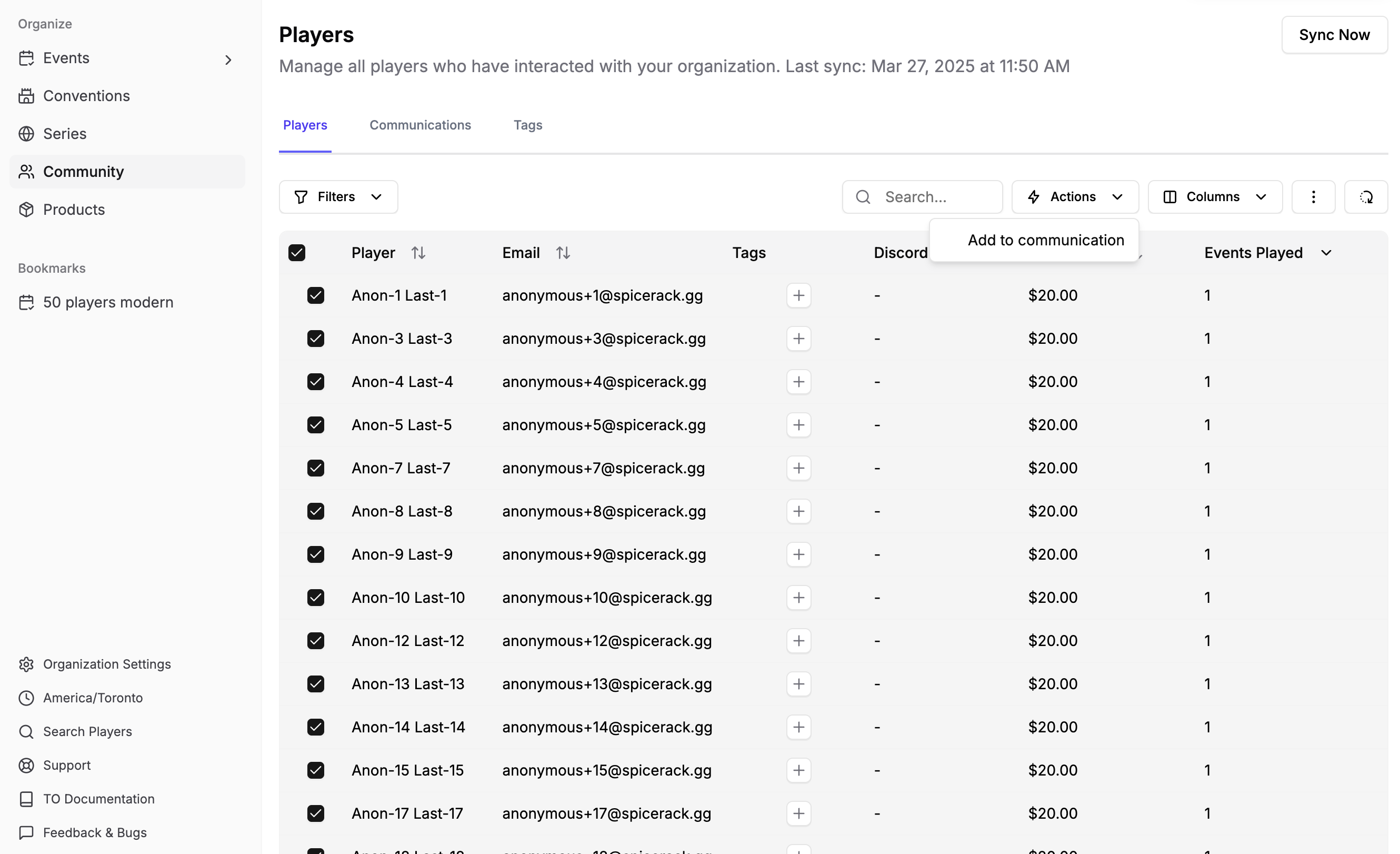Managing your players and communicating with them effectively is a crucial part of running successful events. This guide will help you understand how to use the player management and communication tools.Player List
