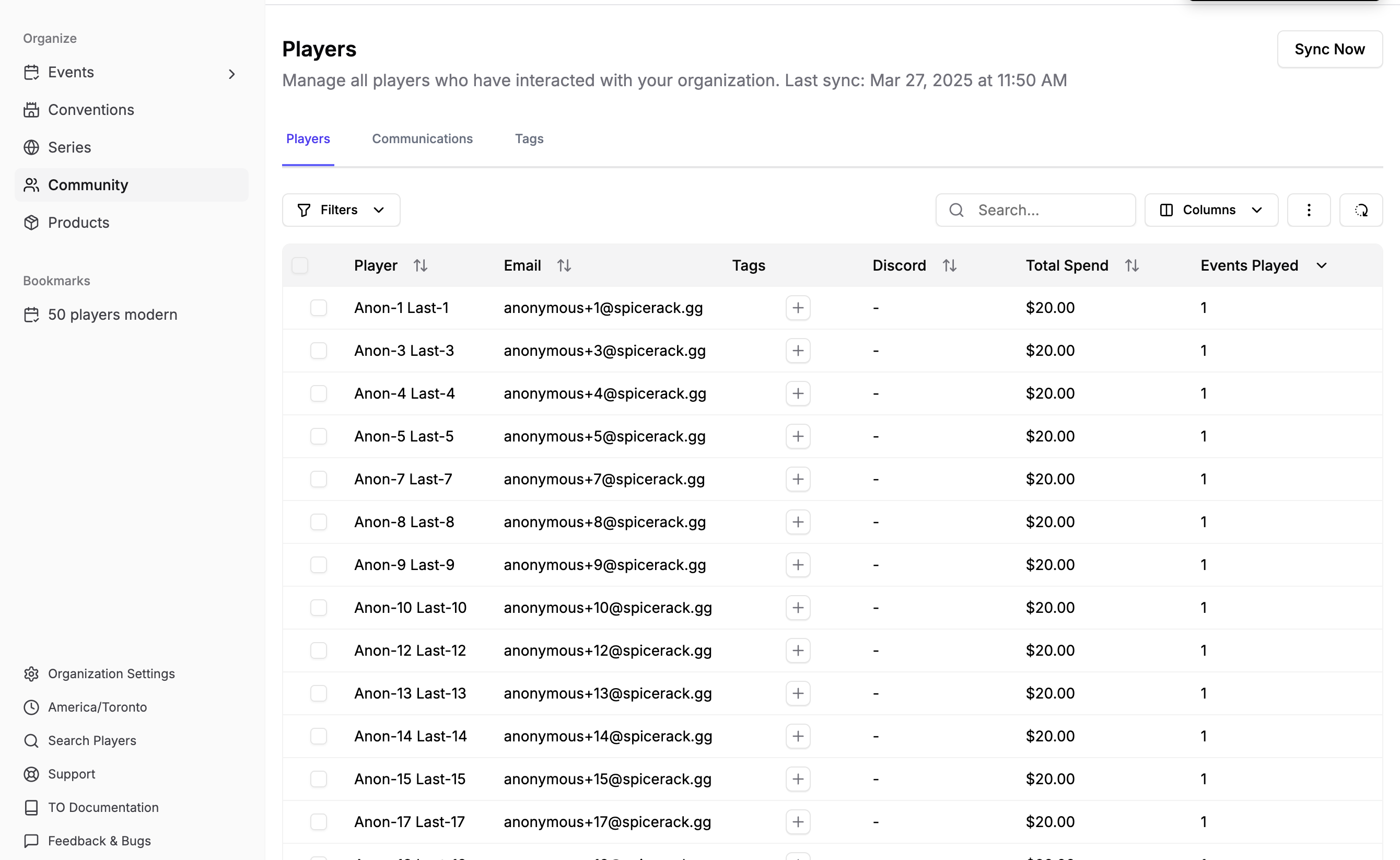 Your player list automatically updates once per day at 8:00 PM EST. You can also manually sync the data by clicking the “Sync Now” button at the top of the page.Player Tags
